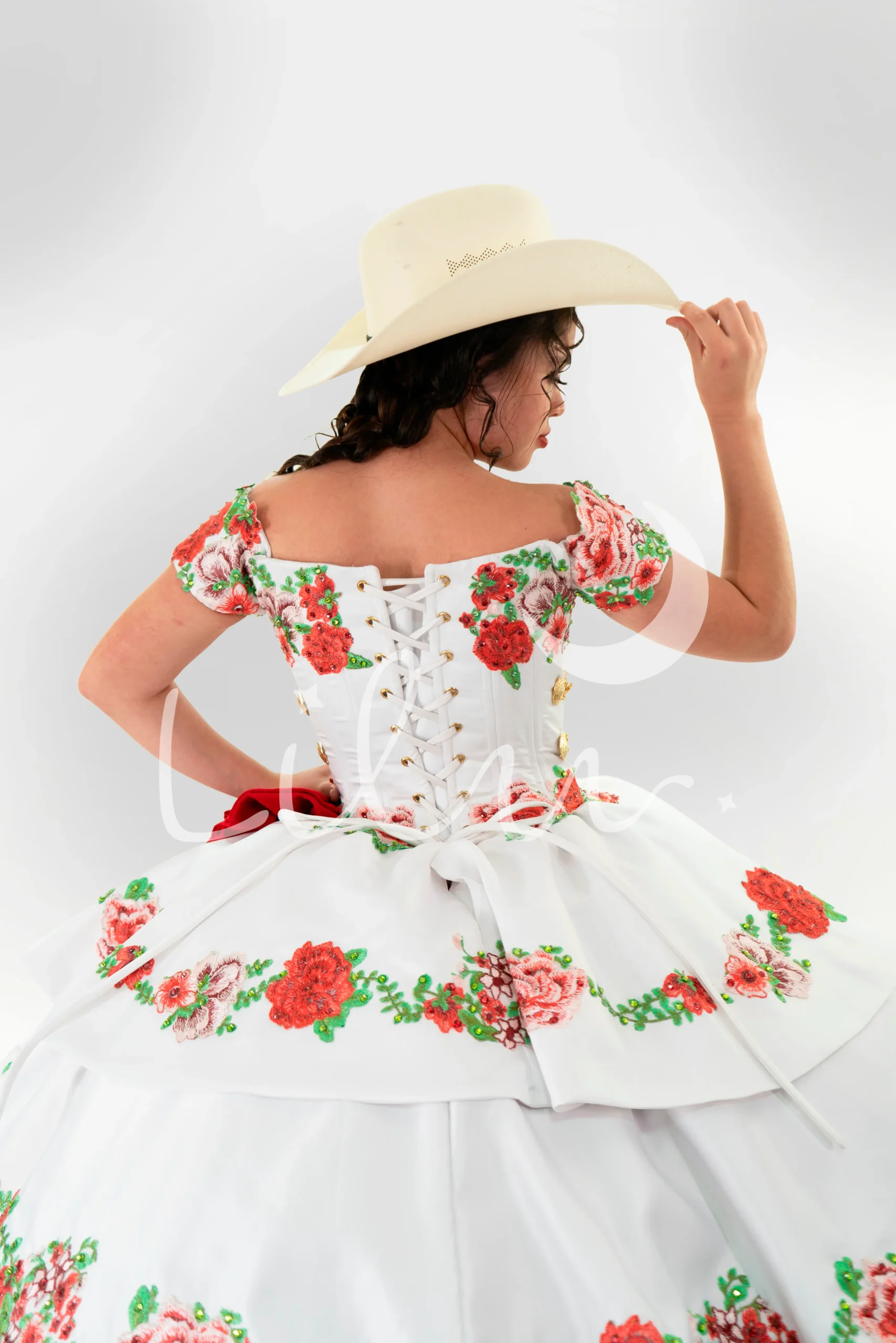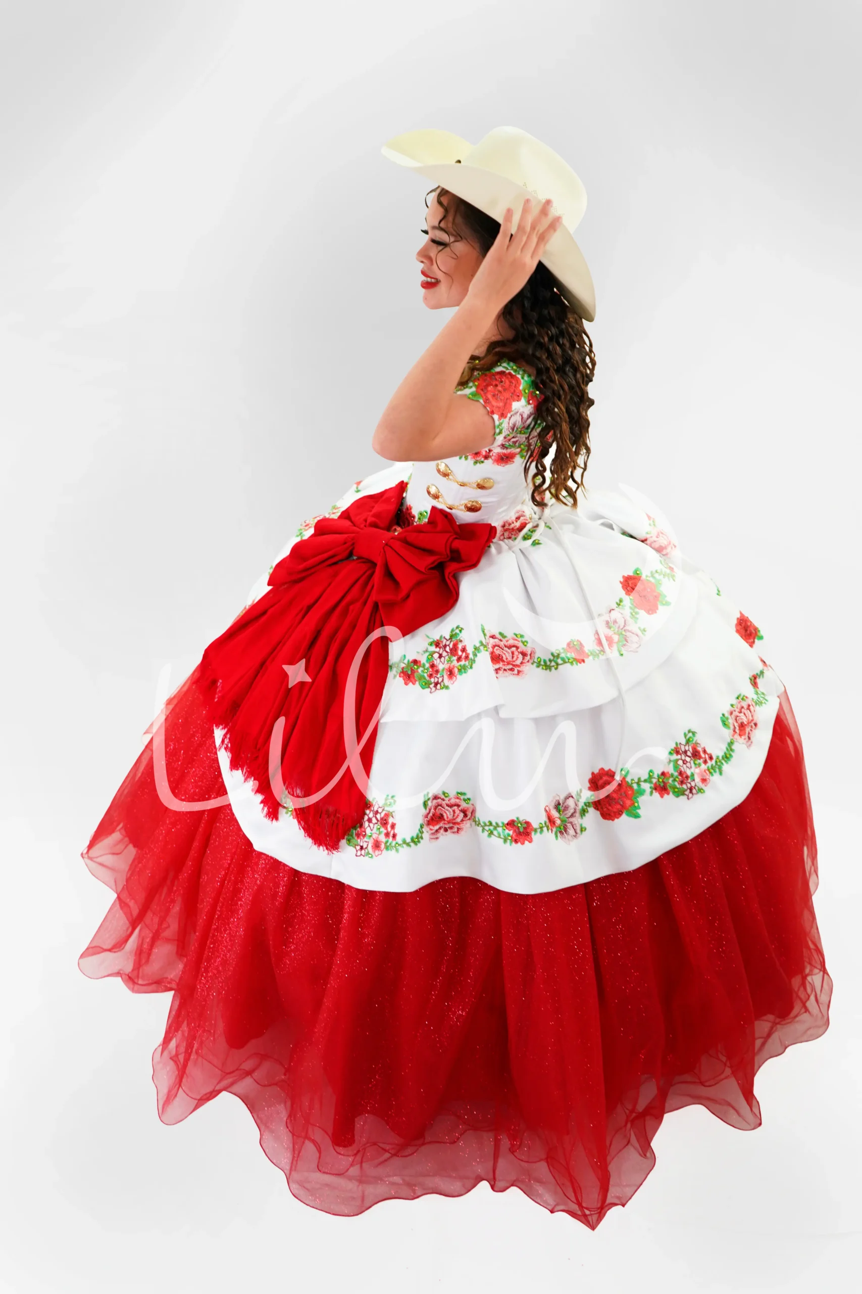 Charro, flores, aplicacion bordada, glitter, moño, mexicano